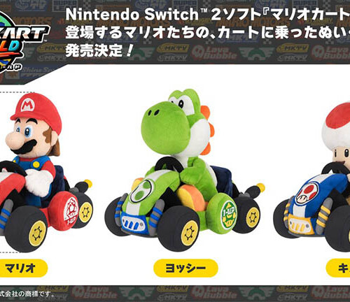 三英貿易は、Nintendo Switch 2 ソフト『マリオカート ワールド』に登場する、マリオ、ヨッシー、キノピオのカートに乗ったぬいぐるみの発売...