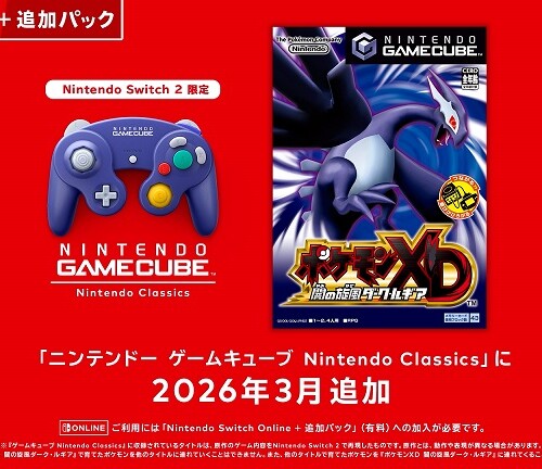 「ニンテンドー ゲームキューブ Nintendo Classics」に『ポケモンXD 闇の旋風ダーク・ルギア』3月配信!