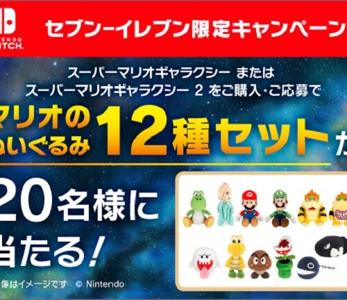 マリオぬいぐるみ12種セットが当たる!セブン-イレブンで『スーパーマリオギャラクシー』ダウンロードカード購入キャンペーン実施