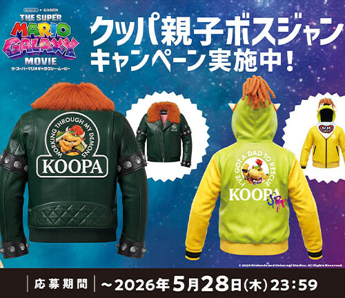 クッパとクッパJr.をモチーフにしたボスジャン親子セットが当たるキャンペーンを実施。「クラフトボス」と「ザ・スーパーマリオギャラクシー・ムービー」のコラボ第2弾!