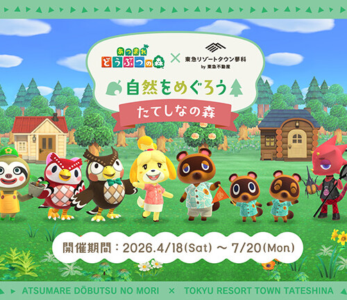 2026年4月18日(土)〜7月20 日(月・祝)の間、イベント「あつまれ どうぶつの森 × 東急リゾートタウン蓼科 自然をめぐろう たてしなの森」が...