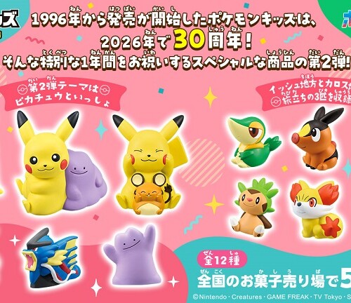 バンダイキャンディ事業部より、フィギュア付き食玩「ポケモンキッズ 30周年スペシャル vol.2編」が2026年5月に発売されます。 イーブイたちと一...
