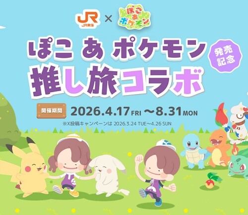 東海旅客鉄道株式会社(以下、JR東海)より、「推し旅」と『ぽこ あ ポケモン』のコラボキャンペーンが実施されます。期間は4月17日(金)から8月31日...