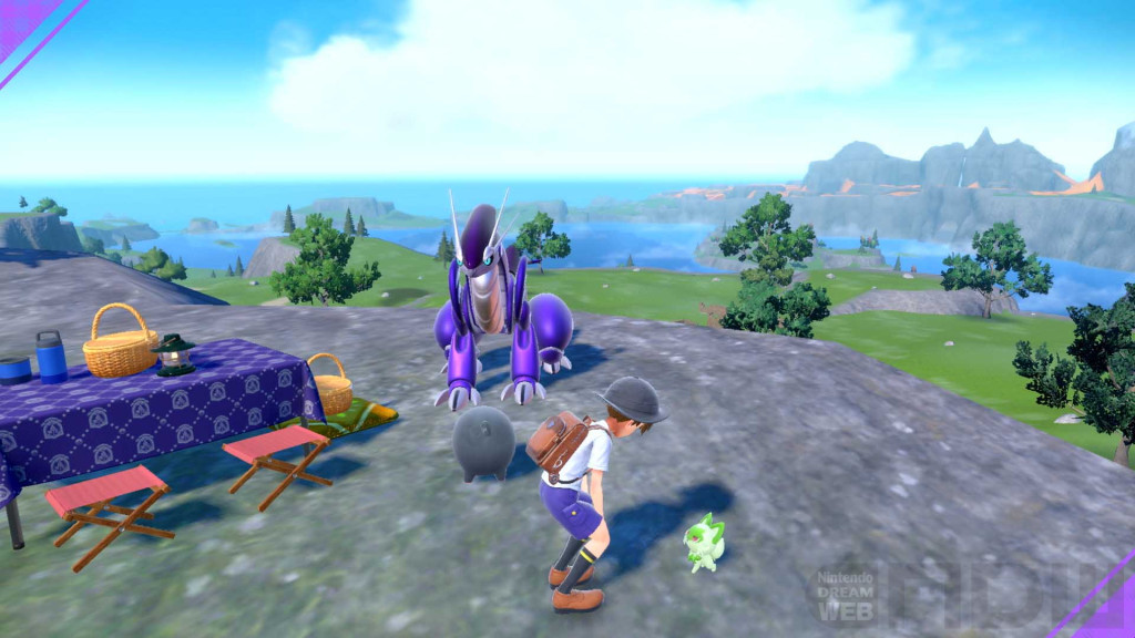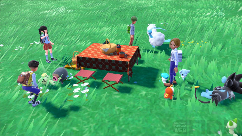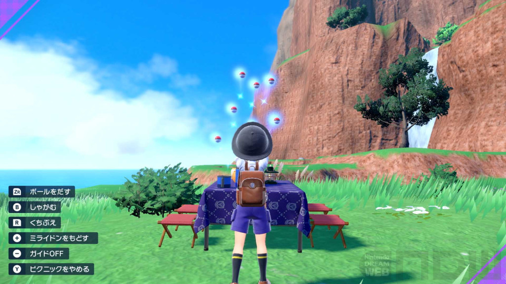 ピクニックを始めると、手持ちのポケモンや、一緒に冒険している伝説のポケモンであるコライドン/ミライドンがフィールドに勢ぞろいします。