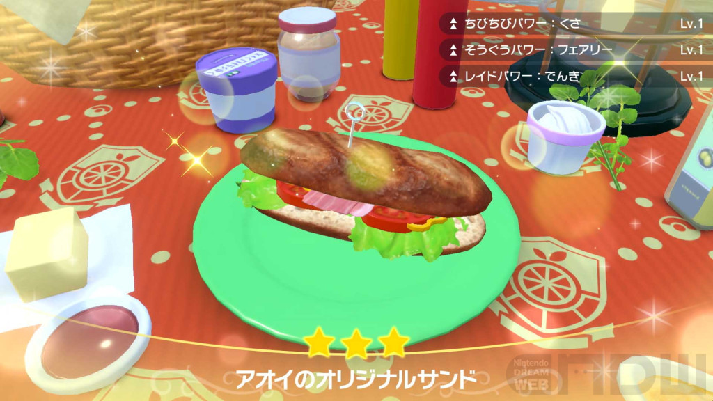 ピクニックでは、さまざまなサンドウィッチを作ることができます。サンドウィッチを作るときは、まず「具材」「味付け」「ピック」を決めましょう。準備ができたら具材をつかんで、パンの上にバランスよく乗せていきます。ポケモンがサンドウィッチを食べると、ポケモンの体力が回復するだけでなく、冒険に役立つ嬉しい効果を得られることもあります。
