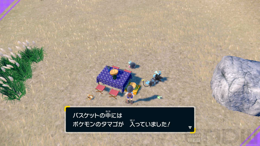 ピクニックをしている間、ポケモンたちは自由気ままに過ごしています。1匹ずつ話しかけたり、一緒におもちゃで遊んだりしてコミュニケーションを取り、絆を深めることもできます。また、ポケモンたちとピクニックをしていると、ポケモンのタマゴが見つかることがあります。