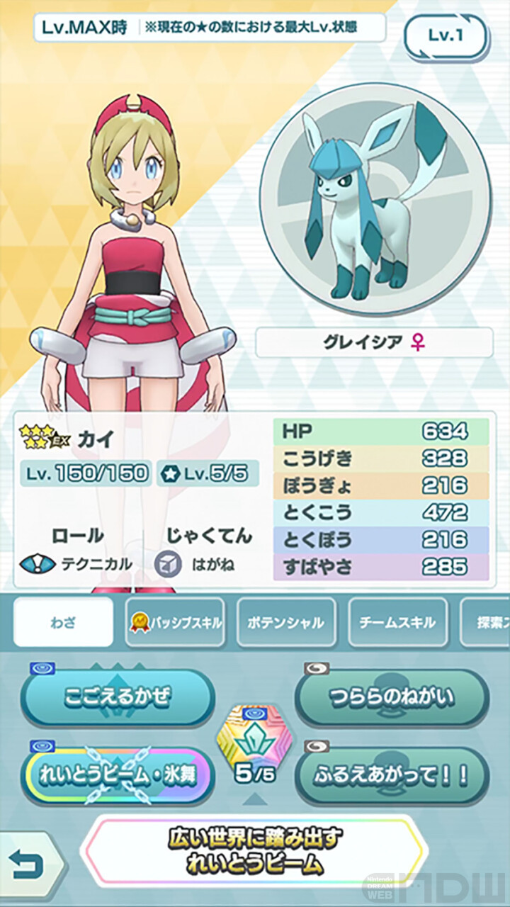 バディーズわざ「広い世界に踏み出すれいとうビーム」は、天気が「あられ」の時に威力が上がります。「★5カイ&グレイシア」は、テクニカルのバディーズのため、「★6EX」に★アップすると、バディーズわざの威力が上がります。