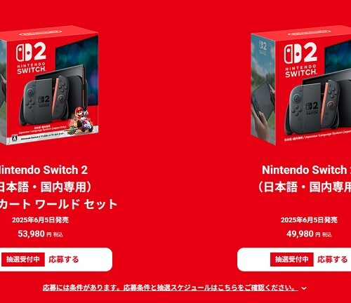 マイニンテンドーストアにて、2025年6月5日発売予定のNintendo Switch 2の抽選受付がスタートしました。 条件を満たした人が応募可能 ...
