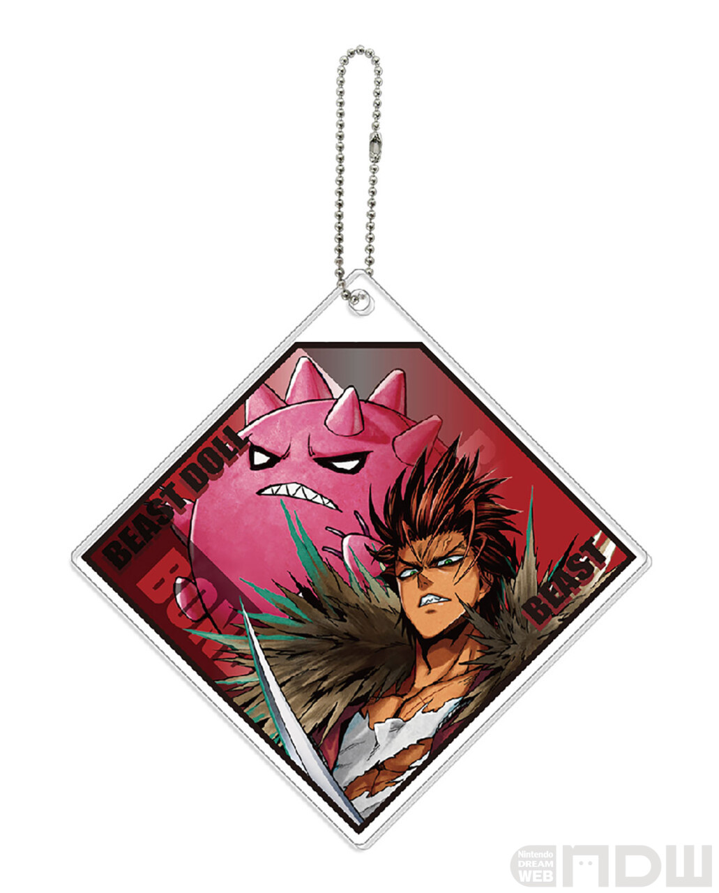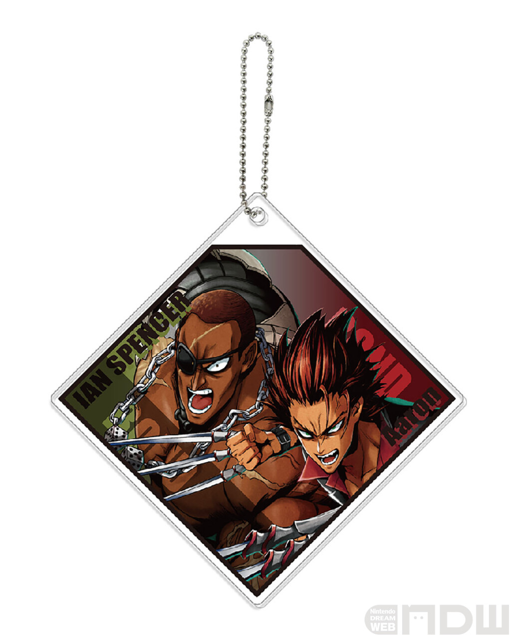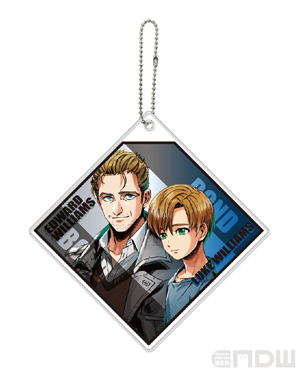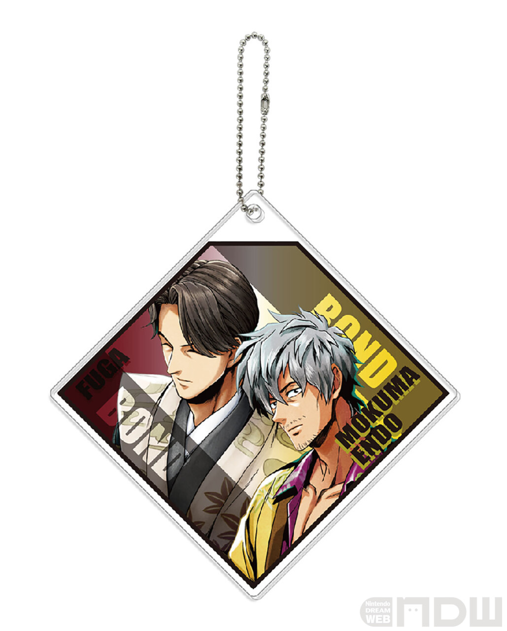 作中で繋がりのある2人のアクリルキーホルダーです。重なった2枚のアクリルそれぞれにキャラが1人ずつデザインされています。