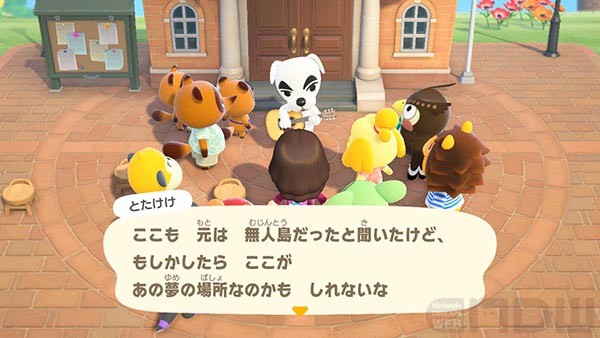 島の評判を広めていくと、「K」という人物から島に対してメッセージが寄せられます。送り主が「とたけけ」であることに気づいたたぬきちは、すぐさまライブをオファー。