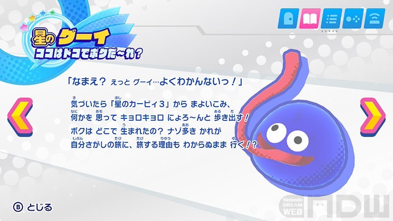 公式サイトではカービィのお友だちと説明されており、自身のことを「ぼく」と呼んでいるようす。また、ボスである「ダークマター」と同じ種族ですが邪悪な心は持っていません。