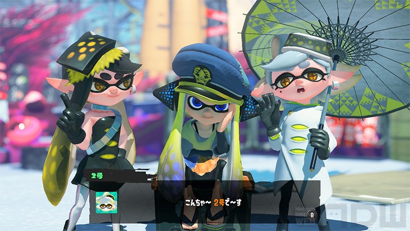 前作から2年後を描いた『スプラトゥーン2』では、またもや「オオデンチナマズ」が姿を消し、相方のアオリも行方がわからなくなっていました。一連の事件の犯人はタコ軍団ではないかと推測したホタルは、ハイカラスクエアで協力者を探すことに。そして「New!カラストンビ部隊」のアタリメ司令の代理として、プレイヤーを4号に任命。協力してタコ軍団に立ち向かいます。