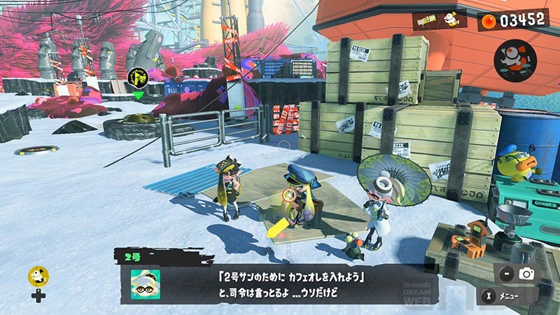 そこで、「New!カラストンビ部隊」の1号(アオリ)と2号(ホタル)、そして現在の司令を務める3号(『スプラトゥーン』の主人公)と合流。崩落時にはぐれてしまったアタリメを探すため、協力して地下世界を探索します。