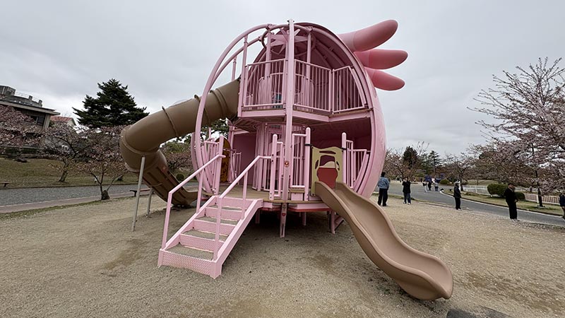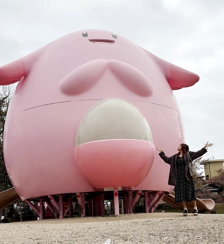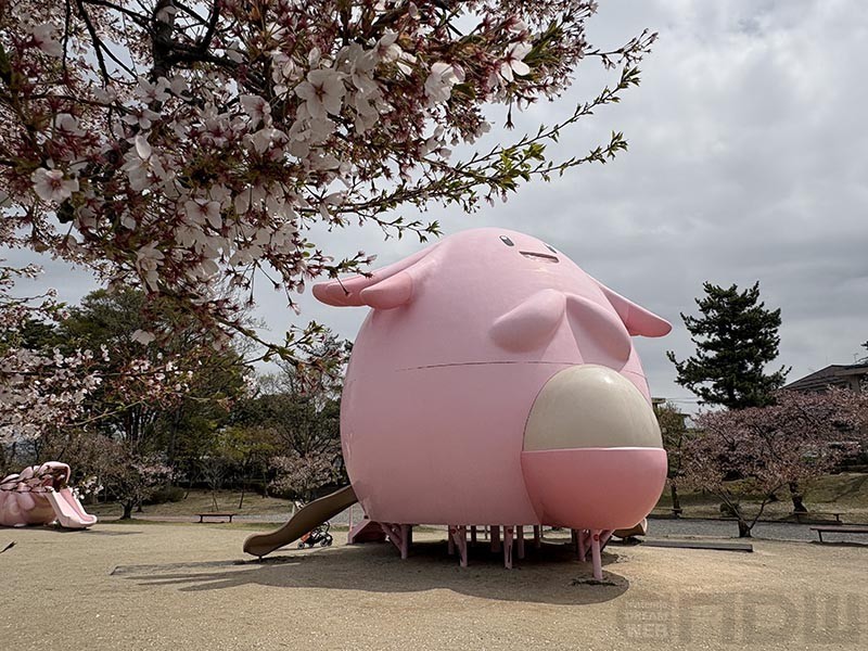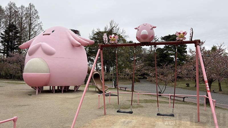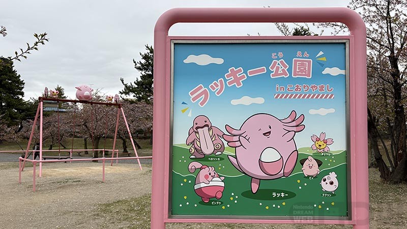 福島県のご当地ポケモンが「ラッキー」で、ラッキー公園にはラッキーを中心としたオブジェや遊具が飾られているという。しかも、福島県内に4ヶ所あるんですね。そのひとつが、なんと郡山にもありました。ら、ラッキー!