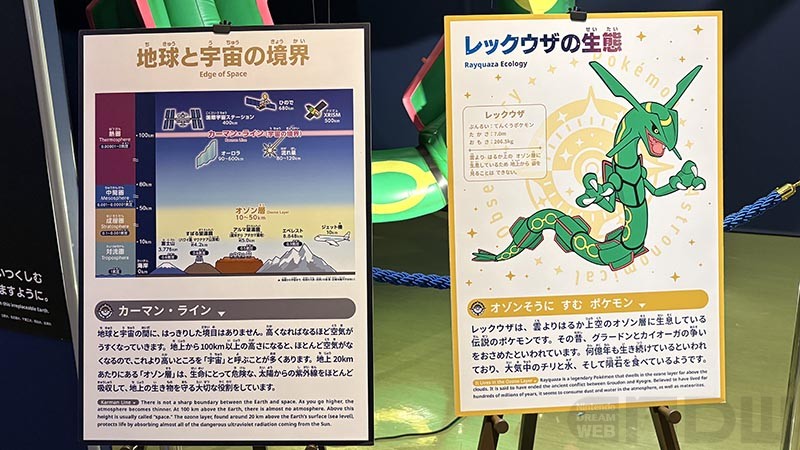 「地球と宇宙の境界」カーマン ・ラインの解説。それとあわせ、レックウザの生態が紹介されています