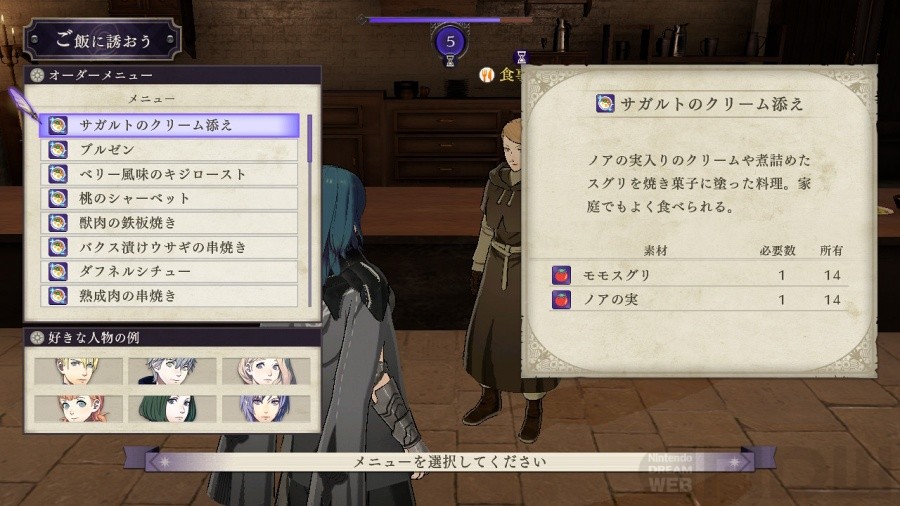 「一緒に料理」では、「ご飯に誘おう」とは異なり食事を取るシーンがないため、具体的な形状を知ることはできませんが、こちらもさまざまなメニューが揃います。特に、フォドラ各地で獲れる希少なジビエを使った料理は、それぞれ違った能力の底上げ効果をもたらします。