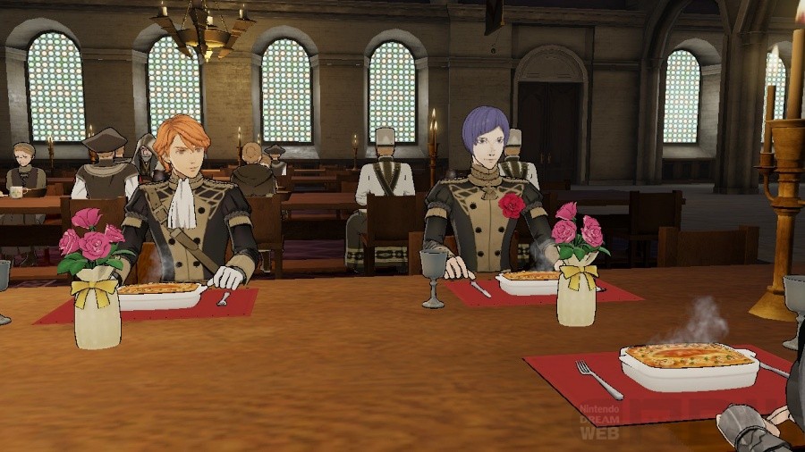 食事係に声をかけると、士官学校の生徒や教師たちの中から二人を誘って一緒に食事を取ることができます。「ご飯に誘おう」で食事をすると、主人公の指導経験値と共に、一緒に食事をした相手との支援値が上昇するほか、担当学級の生徒は「やる気」がアップします。
