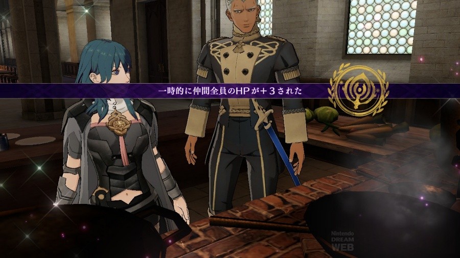 料理長に声をかけると、士官学校の生徒や教師たちの中から一人を誘って一緒に料理を作ることができます。「一緒に料理」で料理をすると、主人公の指導経験値と共に、一緒に料理をした相手との支援値が上昇します。