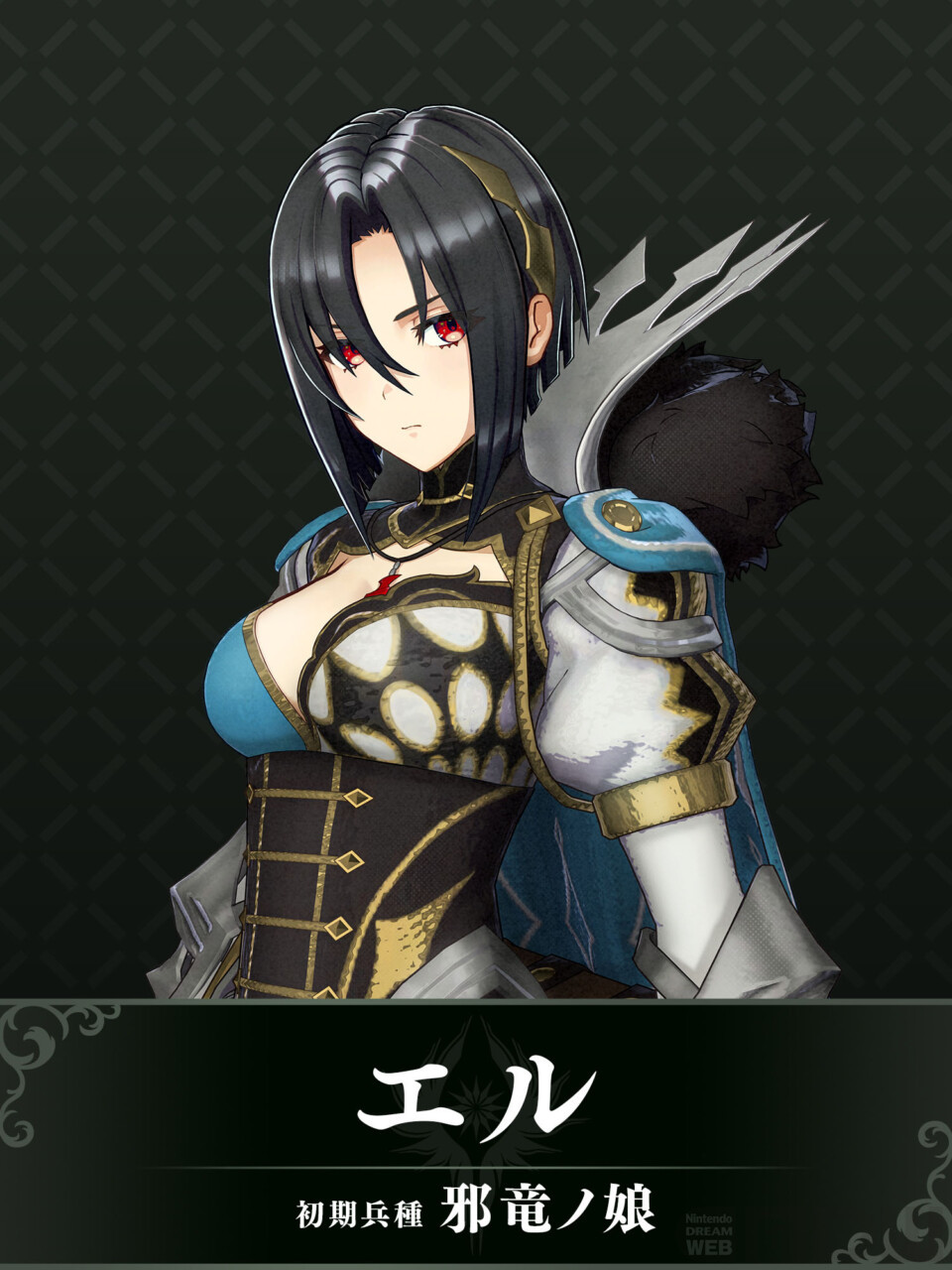 エルの初期兵種は「邪竜ノ娘」。邪竜の血を受け継ぎし者。槍を振るい、竜石でその身を竜へ変え戦います。