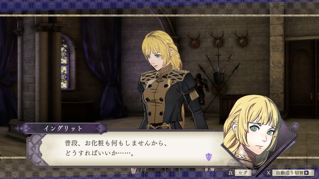 たとえばドロテアとイングリットの支援会話では、アネットとイングリットの支援会話(化粧にまつわる話)をBまで見ていると、上の画像のようにセリフの一部が変化する