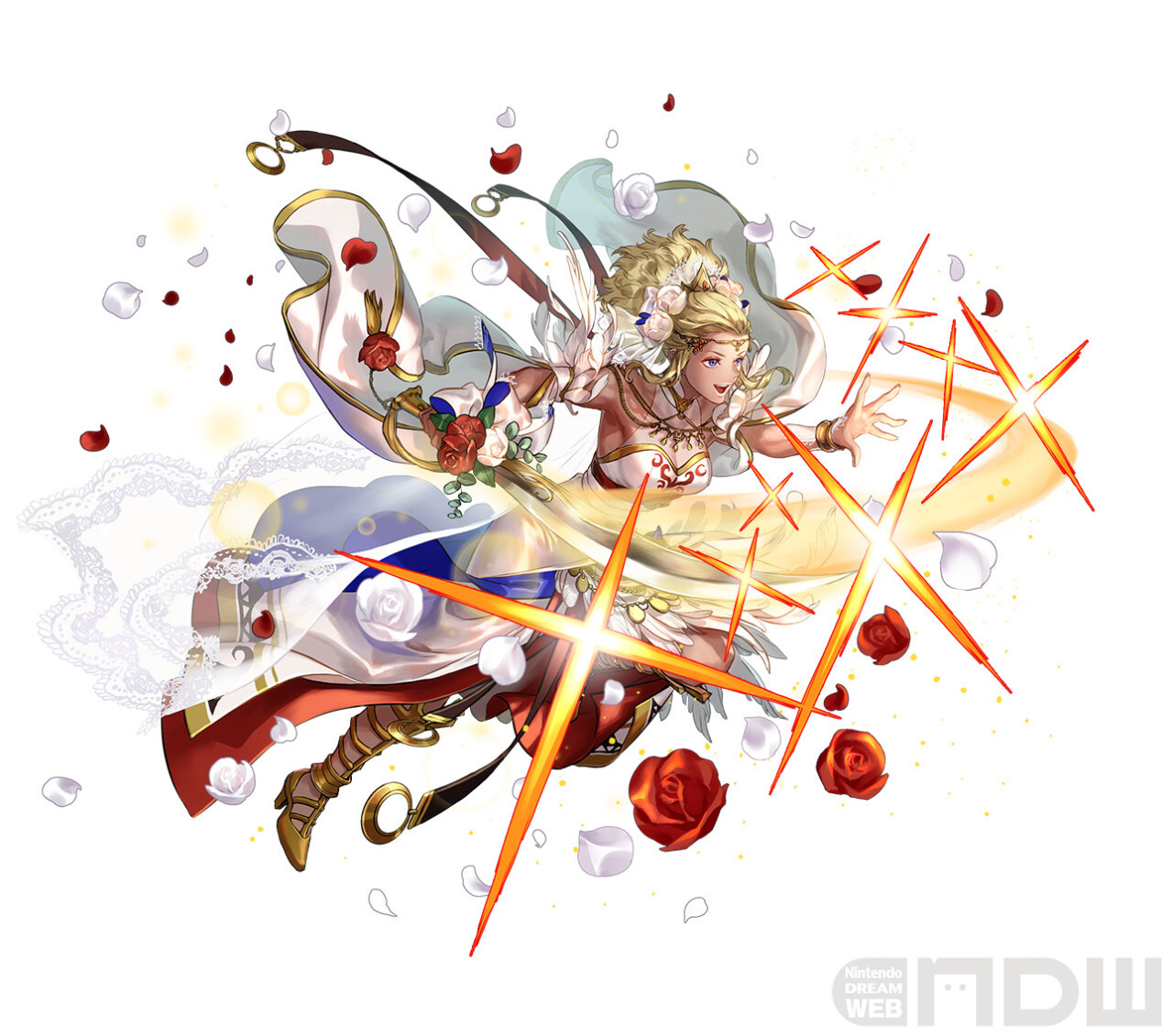 自分から攻撃したとき、または、周囲2マス以内に味方がいるとき、戦闘中、攻撃、速さ、守備、魔防+5、さらに、攻撃、速さ、守備、魔防が神竜の花を自身に使用した回数だけ増加(最大5)、ダメージ+速さの15%(戦闘前奥義も含む)、自分の追撃不可を無効