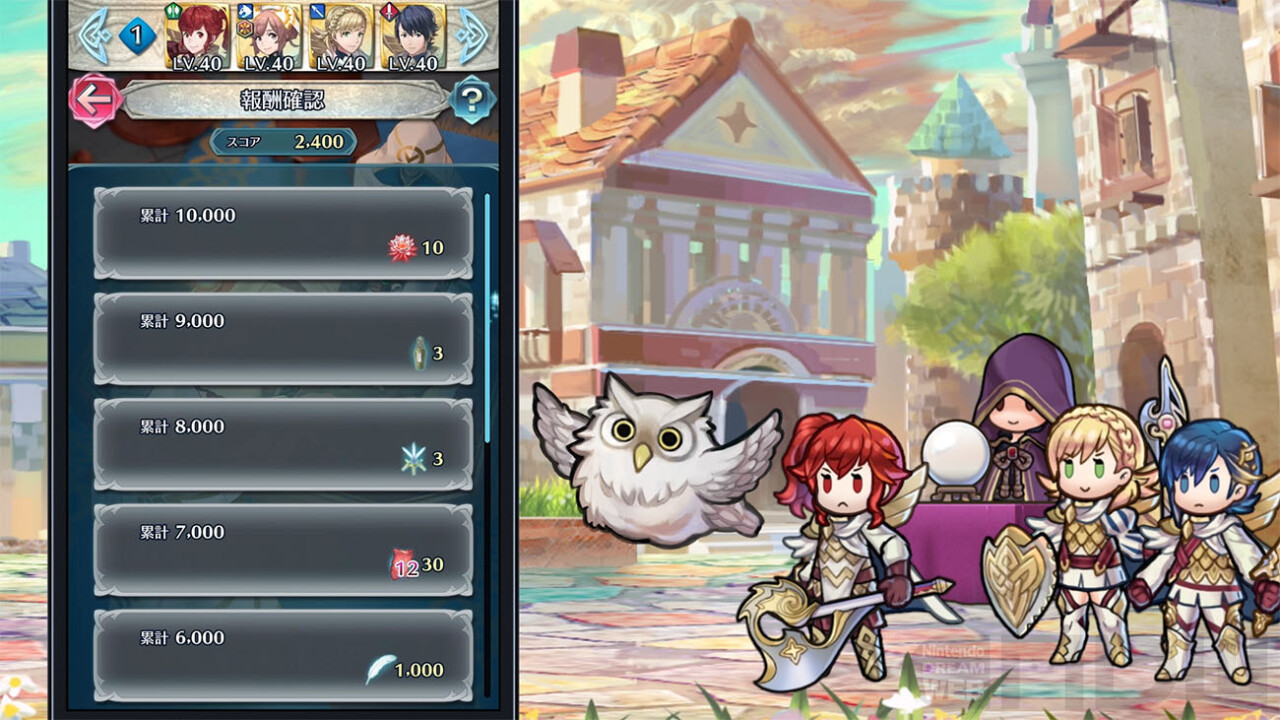 「制圧戦」と同じ広さのマップで、バトルは英雄に「おまかせ」で進みます。累計スコアに応じて報酬も用意されています。