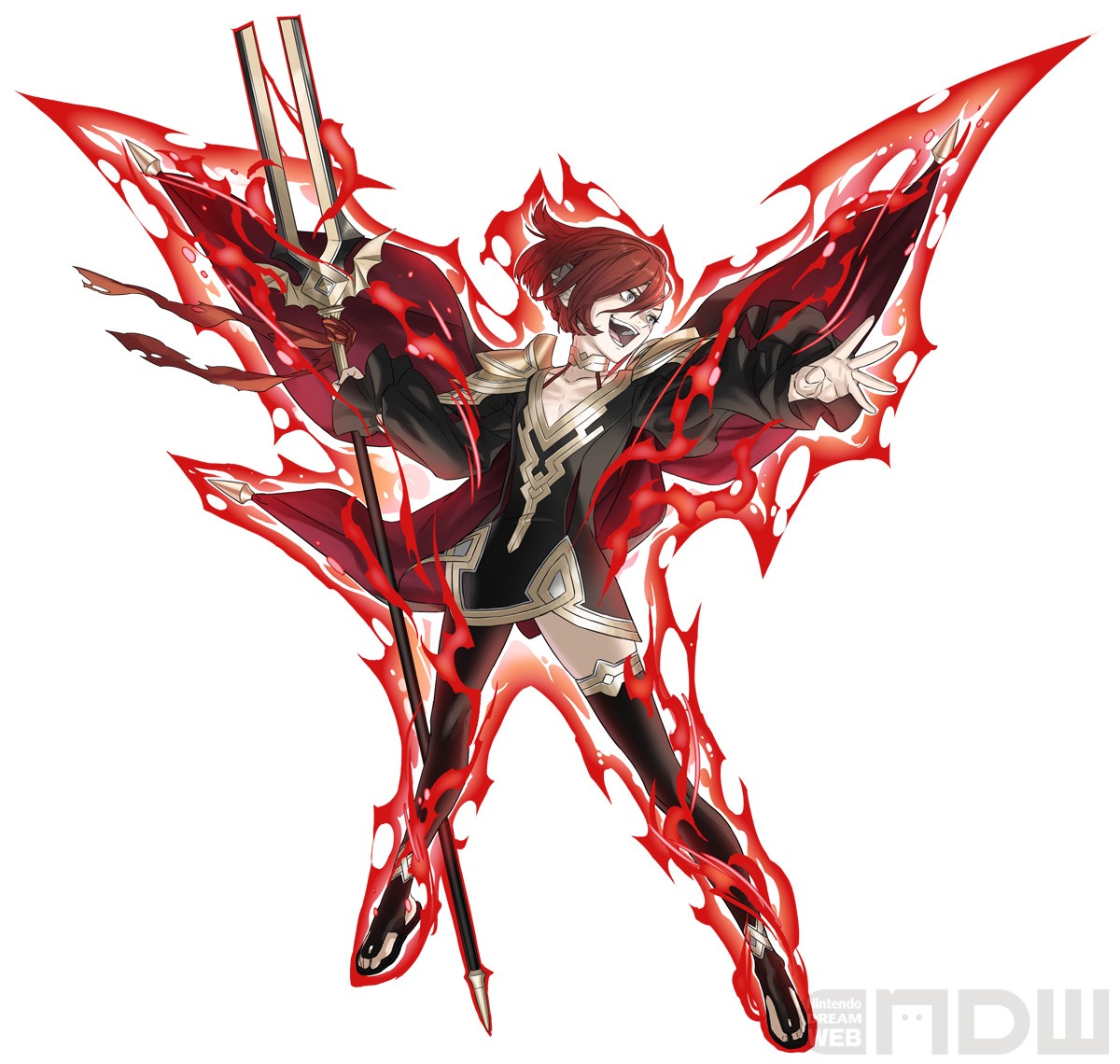 戦闘開始時、自身のHPが25%以上なら、戦闘中、攻撃、速さ、守備、魔防が戦闘開始時の速さの15%だけ増加、ダメージ+○×8(範囲奥義を除く)、最初に受けた攻撃と2回攻撃のダメージ-○×6(○は、敵の周囲3マス以内にいる敵の数(戦闘相手を含む)、最大4)