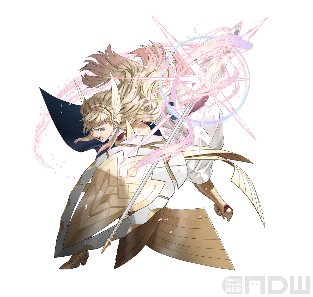 自軍ターン開始時、および、敵軍ターン開始時、自分と周囲2マス以内の味方の攻撃、魔防+6、「戦闘中、自身の奥義発動カウント変動量+1(同系統効果複数時、最大値適用)」、「弱化を無効」を付与(1ターン)