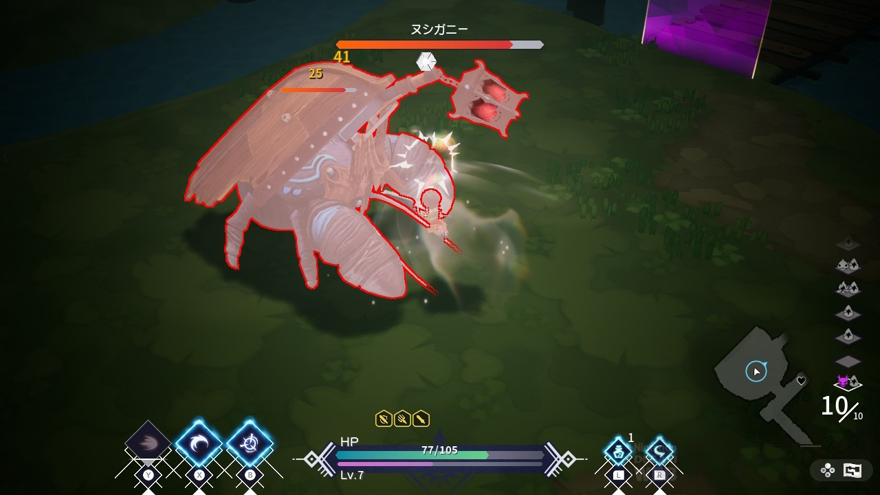 また、ヌシガニーの経験を生かして2階層のボスは初見で倒せたというのもあり、初心者でも諦めずに挑戦していけば成長できる、と感じられたのも本作の楽しさのひとつだと思います。