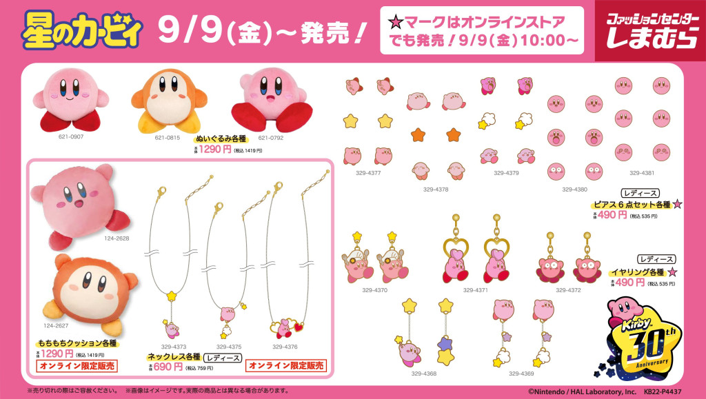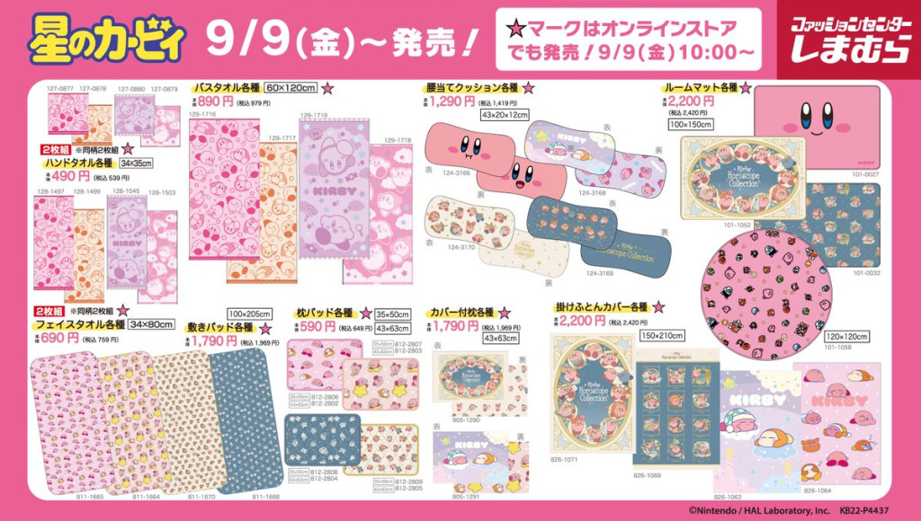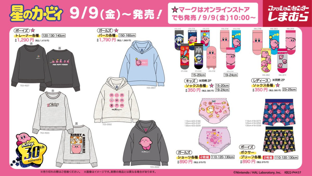 9月9日(金)から「ファッションセンターしまむら」にて「星のカービィ」グッズが発売となっています。