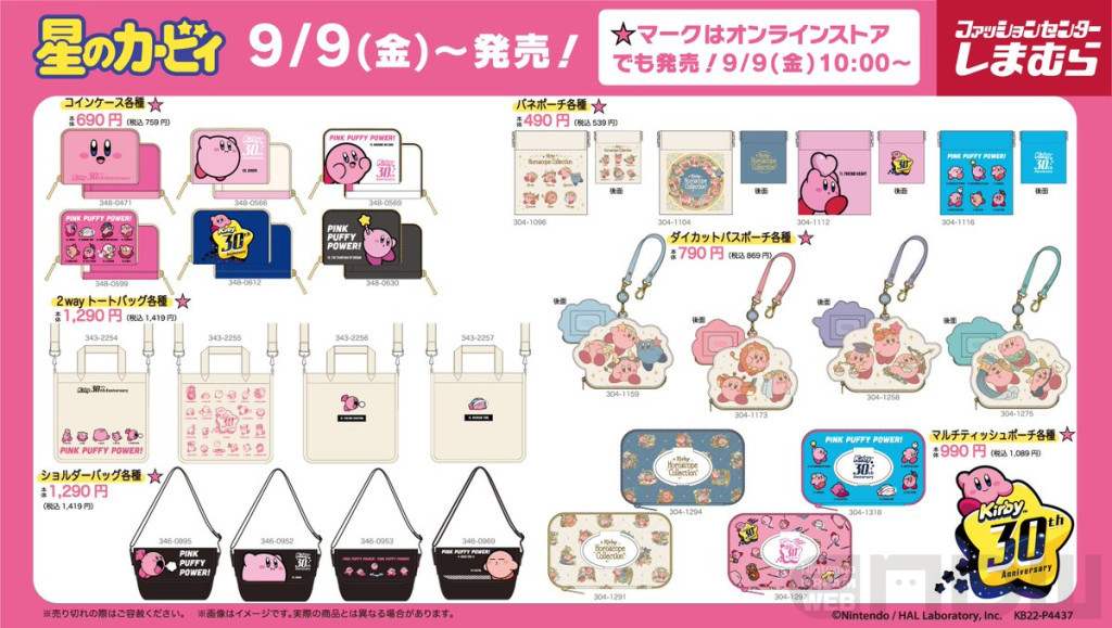 ※カービィグッズは、9月9日(金)10:00より販売開始。