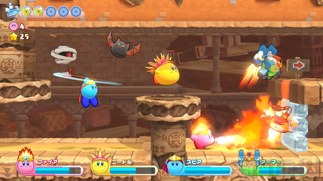 Wii版に登場した能力と合わせて、合計26種類の多彩なコピー能力を使いながら冒険をすすめていきます。