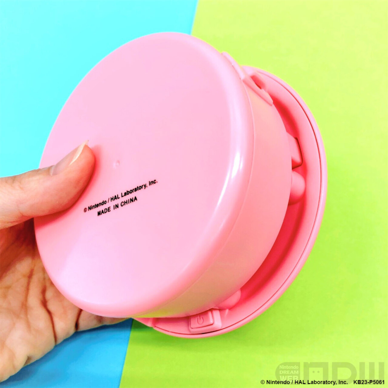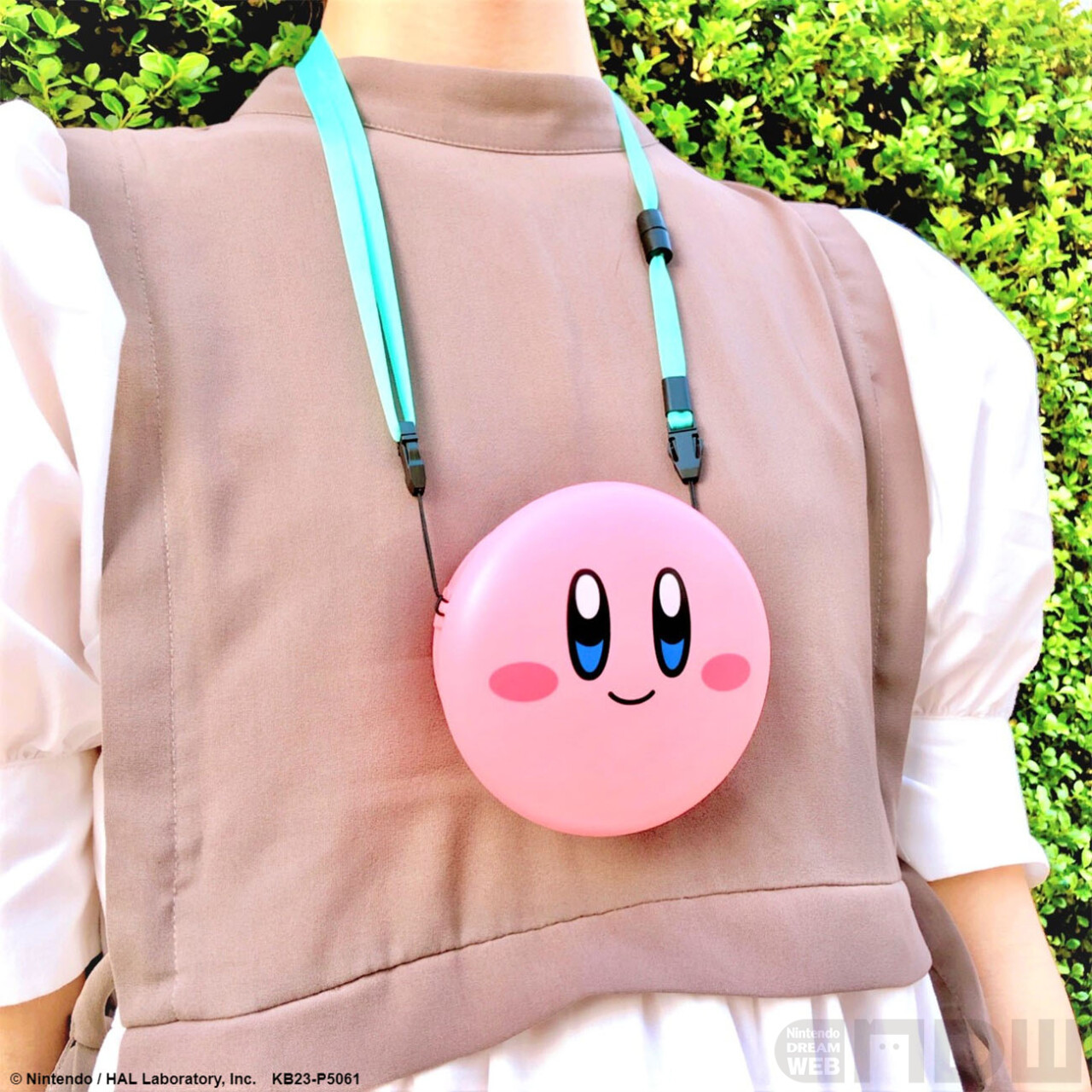 昨年のほおばりカービィの形に続いて、第2弾の「ウェアラブルファン」が登場します。今回はまんまるなカービィの顔の形となっていて、上部から風が出る仕組みになっています。ネックストラップで首から下げることもできますよ。風量も弱・中・強の3段階に調節が可能です。