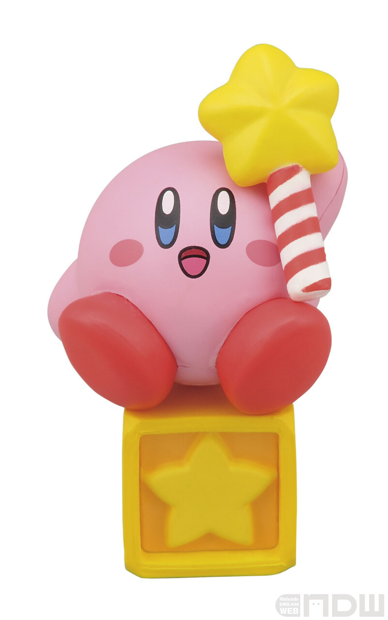 第1弾は表情が異なる10体のカービィとワープスターのセットでしたが、今回はカービィ1体と表情もポーズも異なるワドルディ3体、マキシムトマト1個、スターロッド1個、星ブロック1個のセット内容となっています。のせて遊ぶもよし、ならべて遊ぶもよしのかわいいフィギュアですね。