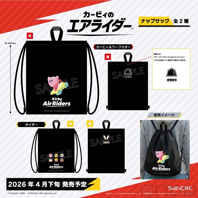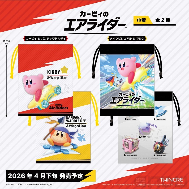 今回発売となるのは、『カービィのエアライダー』のデザインを起用した巾着やタンブラーなどの雑貨。いずれも2026年4月下旬発売予定で、ツインクル公式オンラインショップにて予約を受け付けています。