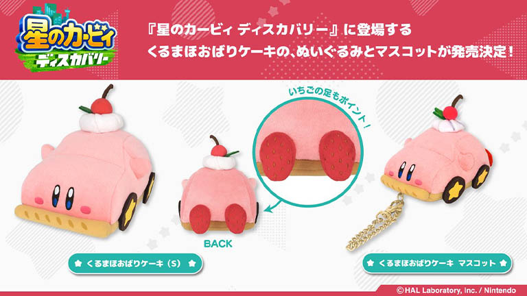 三英貿易から、Nintendo Switchソフト『星のカービィ ディスカバリー』に登場する「くるまほおばりケーキ」のぬいぐるみとマスコットが登場します。