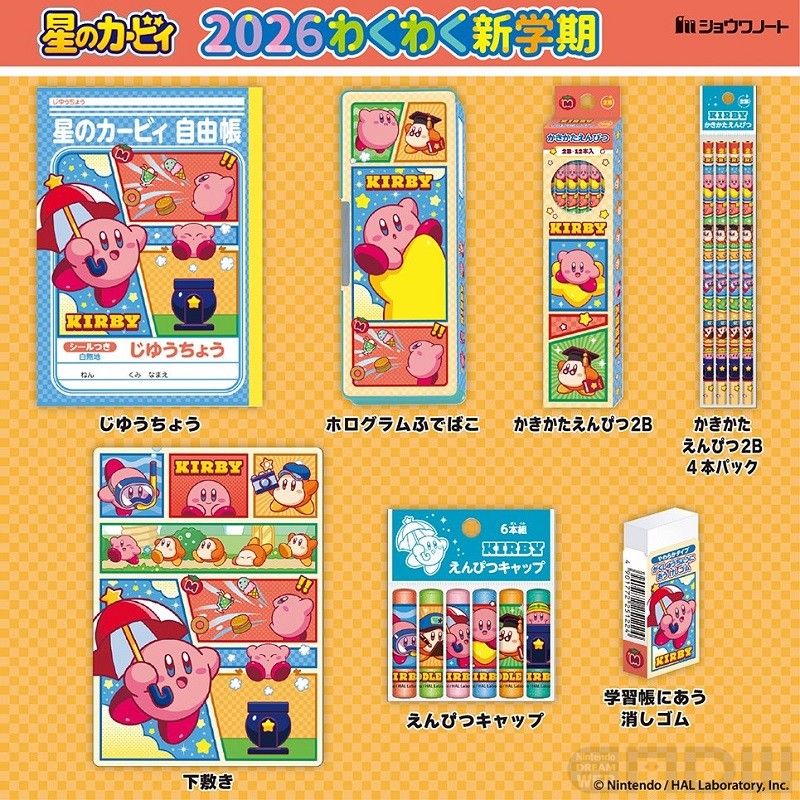 ノートやホログラムふでばこなど、「星のカービィ」の文房具各種がショウワノートより発売