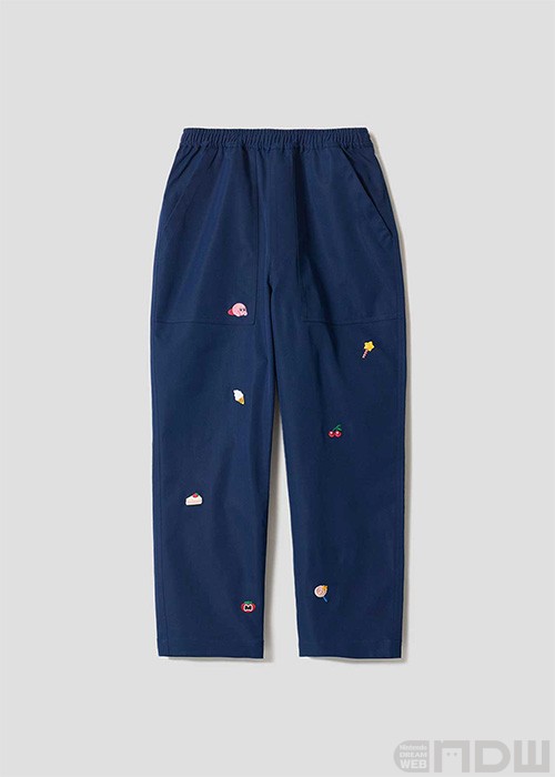 今回販売されるアイテムは、Tシャツやブラウス、ベイカーパンツやショートパンツ、財布、ショルダーバッグなど全19種。「星のカービィ」の特徴でもある「すいこみ」「グルメレース」といったモチーフがちりばめられています。