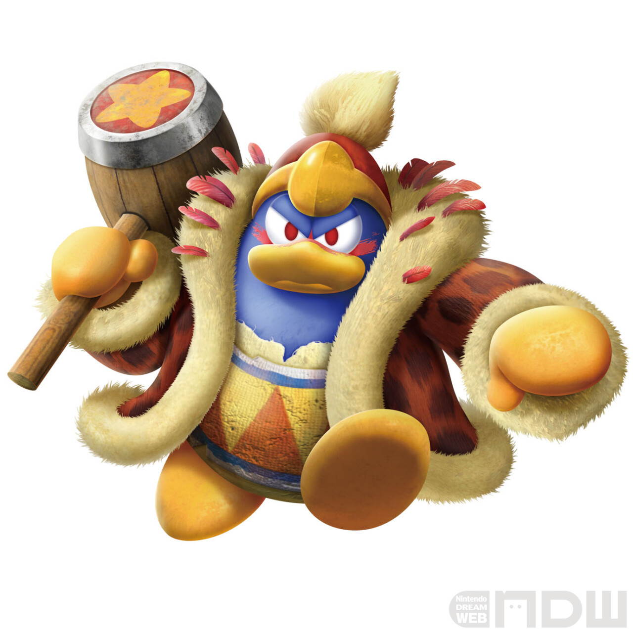 一方、『スターアライズ』では「ドリームフレンズ」として登場するので、ほかと比べて少しコミカルでおとぼけ担当みたいな立ち位置にしました。デデデ大王が本来持っているユニークな部分を、さらにコミカルに強調したデザインです。『ディスカバリー』ではビースト軍団のイメージに合わせつつ新しいデデデ大王のフォルムを模索しました。そして『星のカービィ Wii』のデデデ大王ですが、素直にWii版をそのまま再現するとだいぶ昔の姿に戻ってしまいます。それぞれの作品を見比べ、1作前の『ディスカバリー』の姿にするか、その前の『スターアライズ』の姿にするか、どちらがお客様に受け入れられやすいかすごく悩みました。