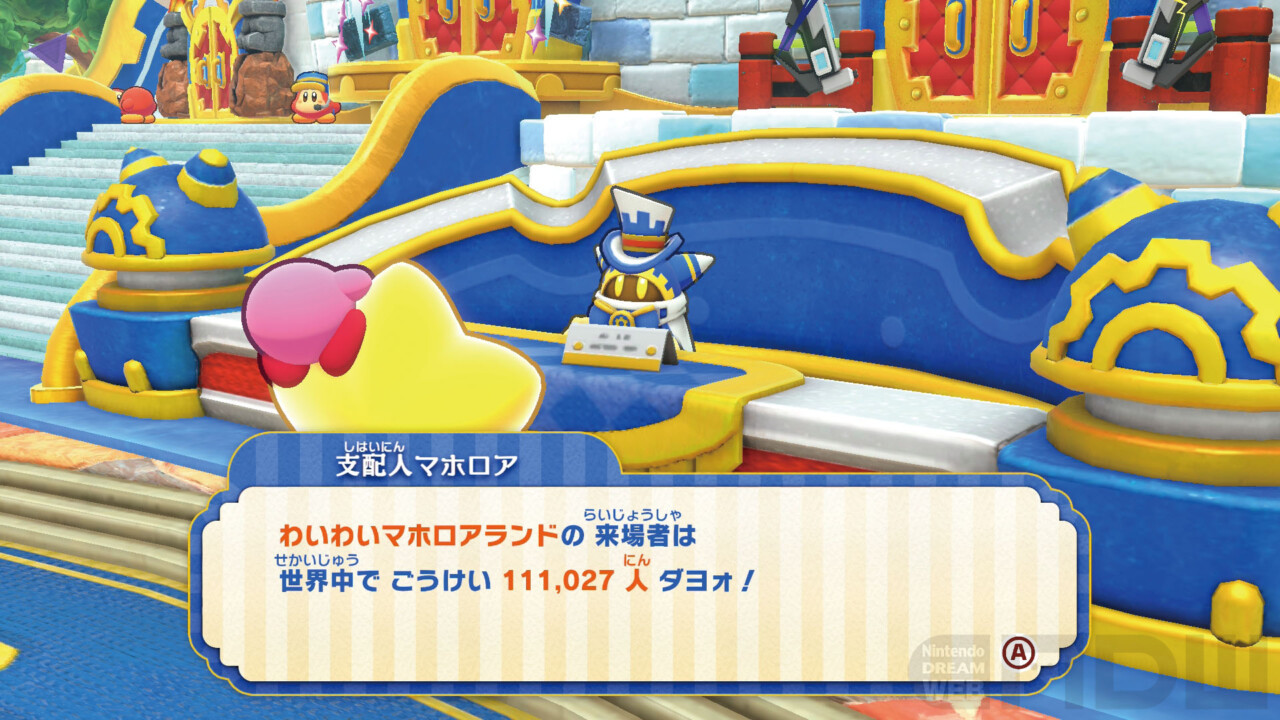 また、今回の「わいわいマホロアランド」はおめんを付けて本編といつでも行き来できる場所なのですが、カービィたちはマホロアランドのあるどこか遠い別世界にワープして移動していると解釈しても問題ないようにしています。