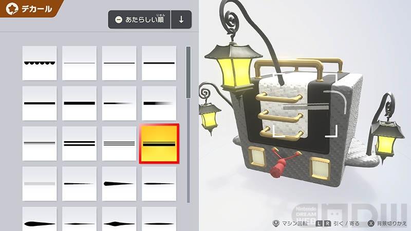 マシンのカラー、柄、アクセサリー、デカール(シール/マーク/ライン/エフェクト)、エフェクト、サウンドを設定して自分好みにカスタマイズできます。