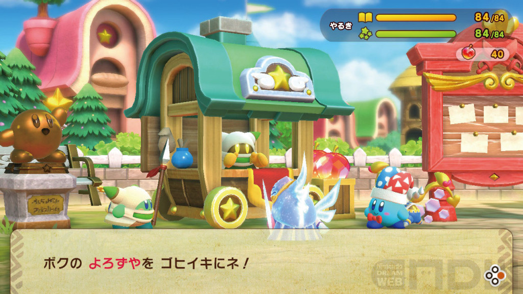 4つのジョブに分かれたカービィたちが、迫り来る敵と大乱闘。広場にあるよろずやでは『星のカービィ Wii』で登場した「マホロア」と会える! 歴代のキャラクターもひっそり登場しちゃう?