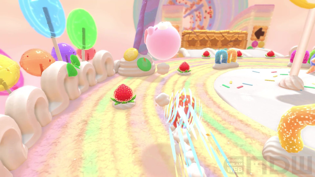 さらにおなじみコピー能力も「コピーフード能力」として登場。カービィがお菓子の姿に変身する「コピーフード能力」を使えば、周囲のイチゴを巻き込んで食べたり、衝撃波で相手を吹き飛ばしたりと、一発逆転を狙える可能性もあるのだとか。