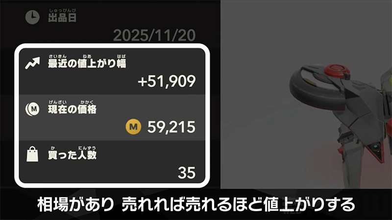 出品中のオレマシンには相場があるため、たくさん売れるほど買取価格が上がっていくといった、興味深い仕組みになっています。