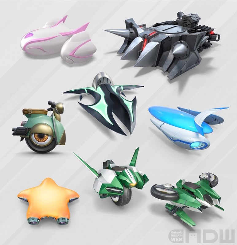 前作『カービィのエアライド』にあった「ウエライド」が、今作『エアライダー』でも引き続き登場します。ライダー、マシンは個別に設定が可能。カメラ視点も選べます。また、コースは『エアライダー』のものがモチーフになっているとのこと。