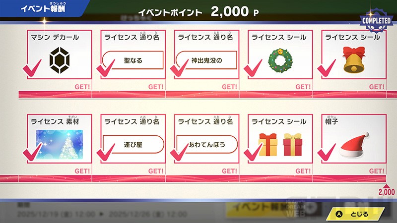 開催時期:2025年12月24日(水)12:00~2025年12月29日(月)12:00まで