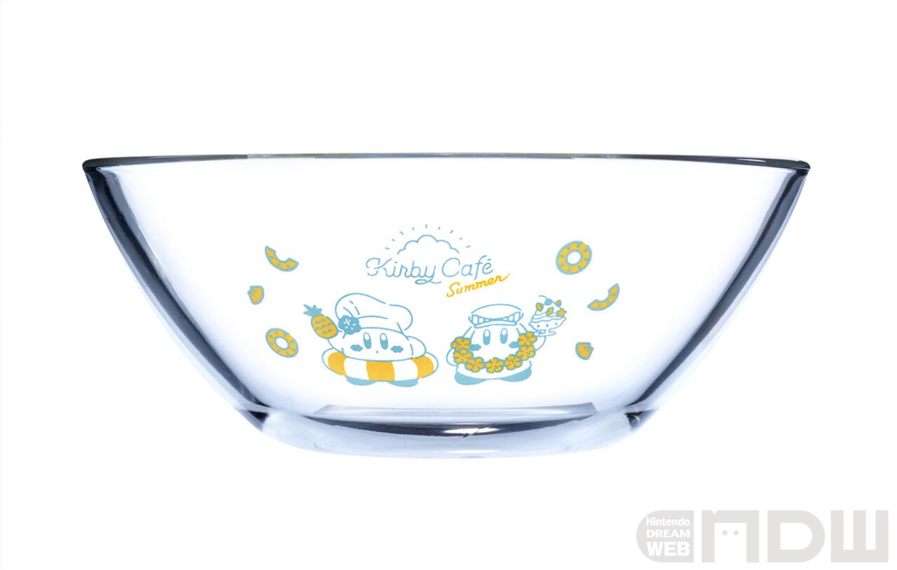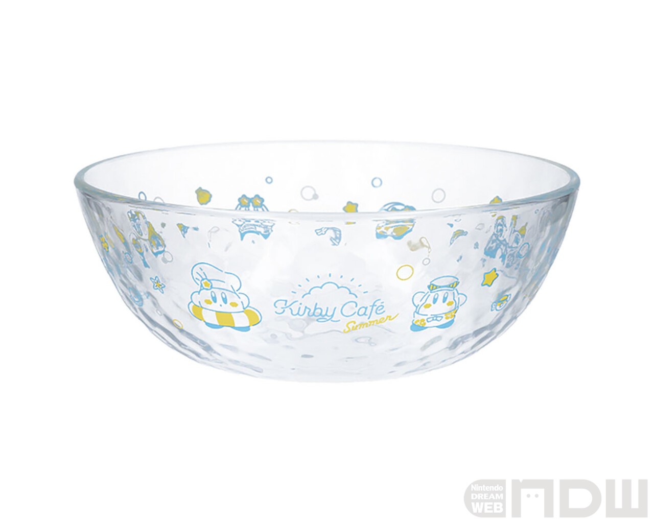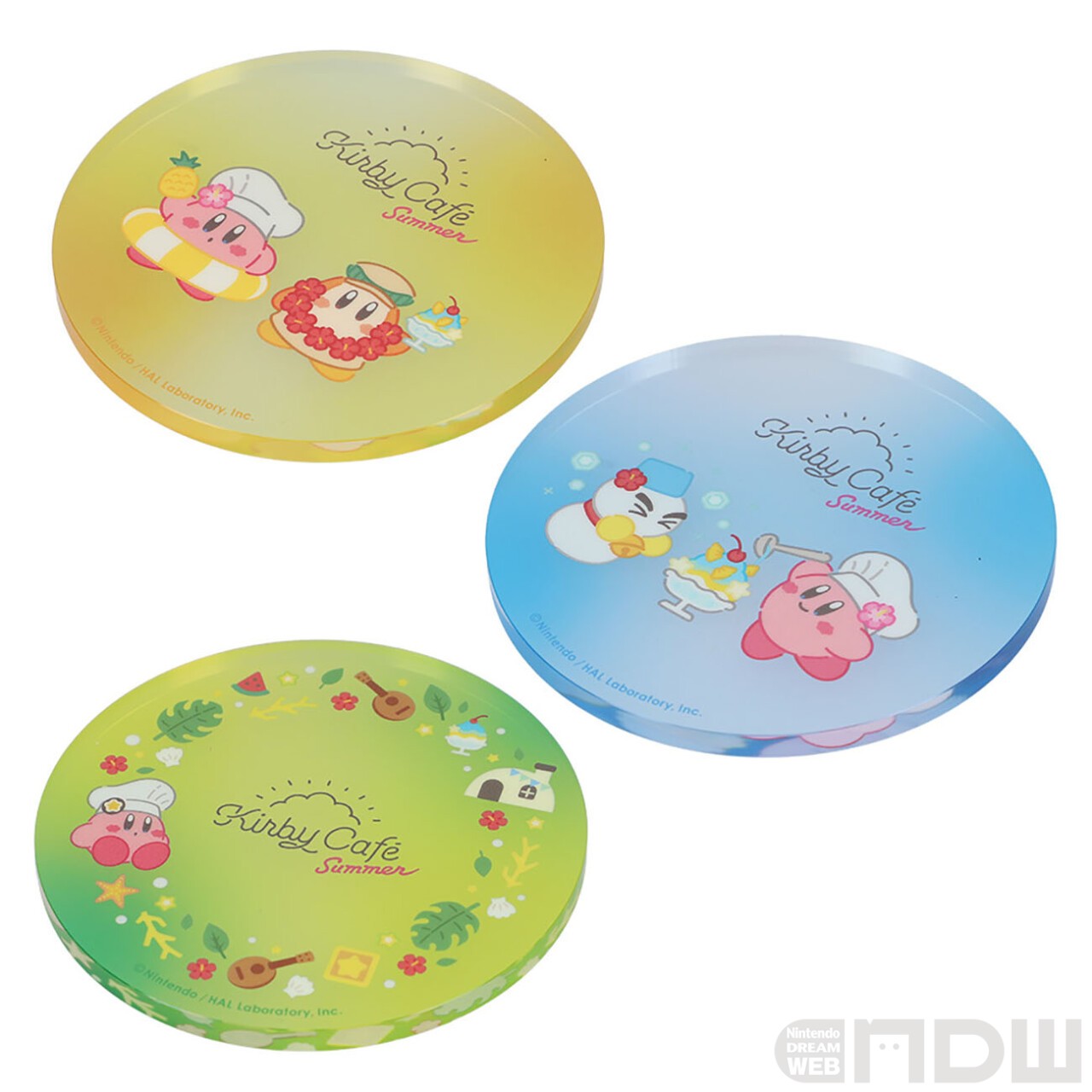 「カービィカフェ Summer 2024」オリジナルグッズとして、夏を楽しむカービィたちの姿が描かれたガラス素材の食器2種とアクリル素材のコースター3種が発売されます。