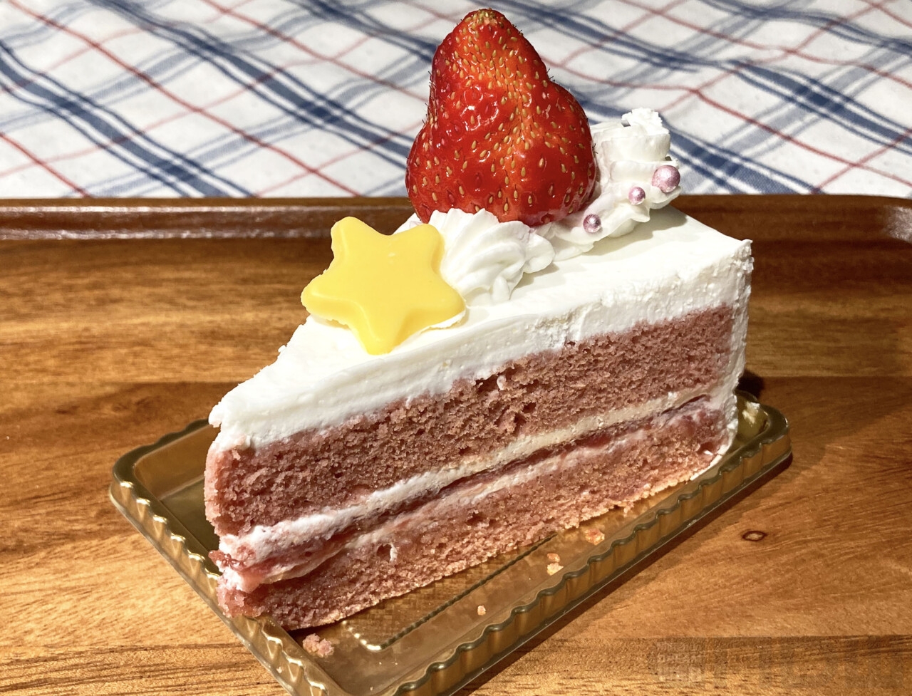しかもトップのいちごだけでなく、スポンジ生地にもイチゴが練り込まれていてリッチな味。