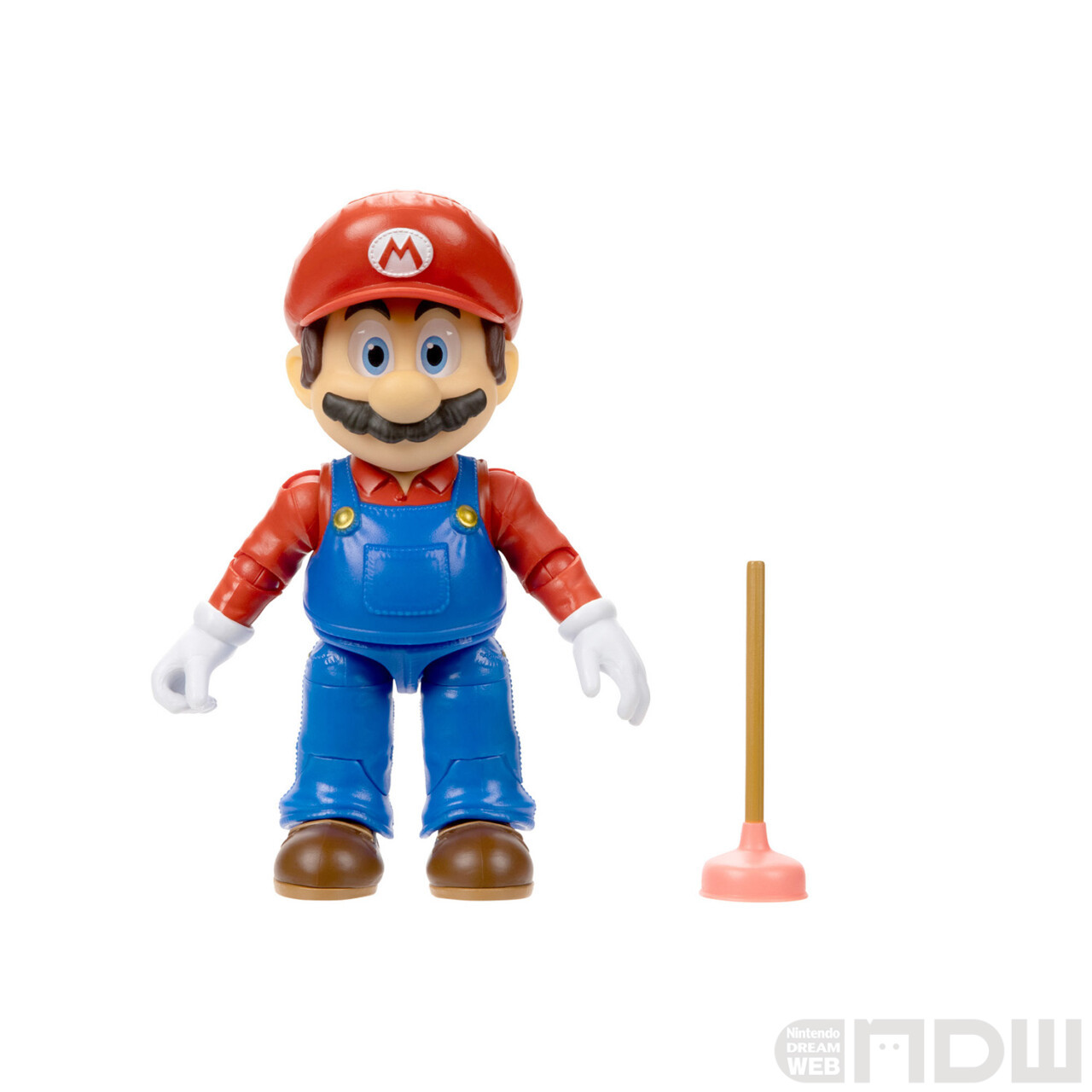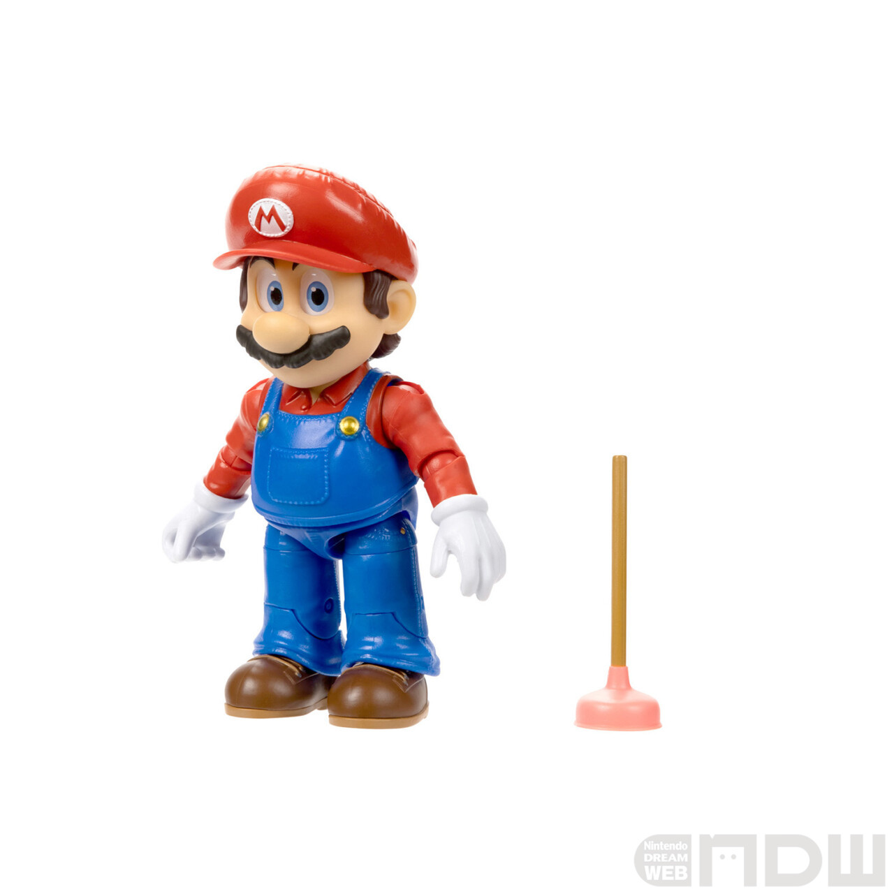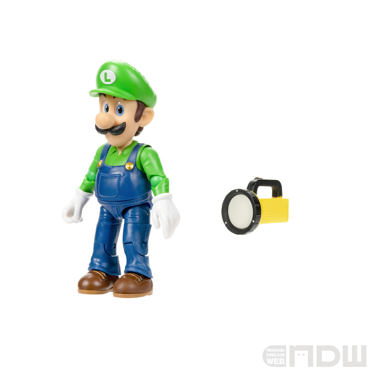 アクションフィギュアは、マリオ、ルイージ、ピーチ、キノピオを 4 種。高さ約 12cmでデ ィテールにこだわった作りになっており、それぞれ 8~16 箇所の関節を動かせる仕様です。マリオにはラバーカップ、ルイージには懐中電灯など、各フィギュアにはアクセサリーが付いています。
