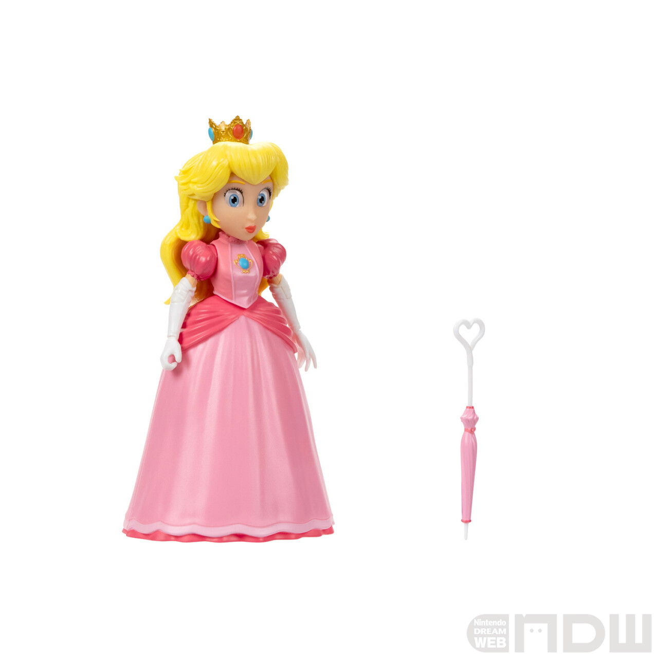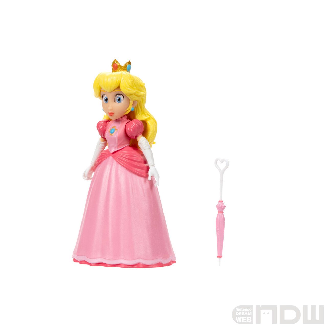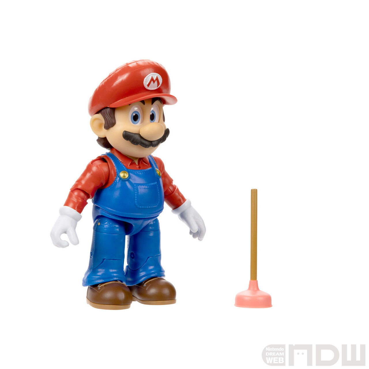 アクションフィギュアは、マリオ、ルイージ、ピーチ、キノピオを 4 種。高さ約 12cmでデ ィテールにこだわった作りになっており、それぞれ 8~16 箇所の関節を動かせる仕様です。マリオにはラバーカップ、ルイージには懐中電灯など、各フィギュアにはアクセサリーが付いています。